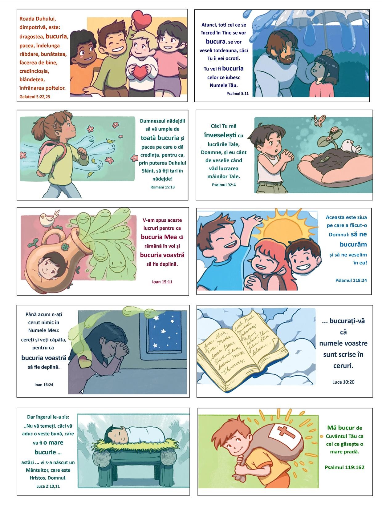 Poți memora alte versete biblice cu ajutorul jocului de memorie. Găsește două imagini potrivite pentru fiecare verset.